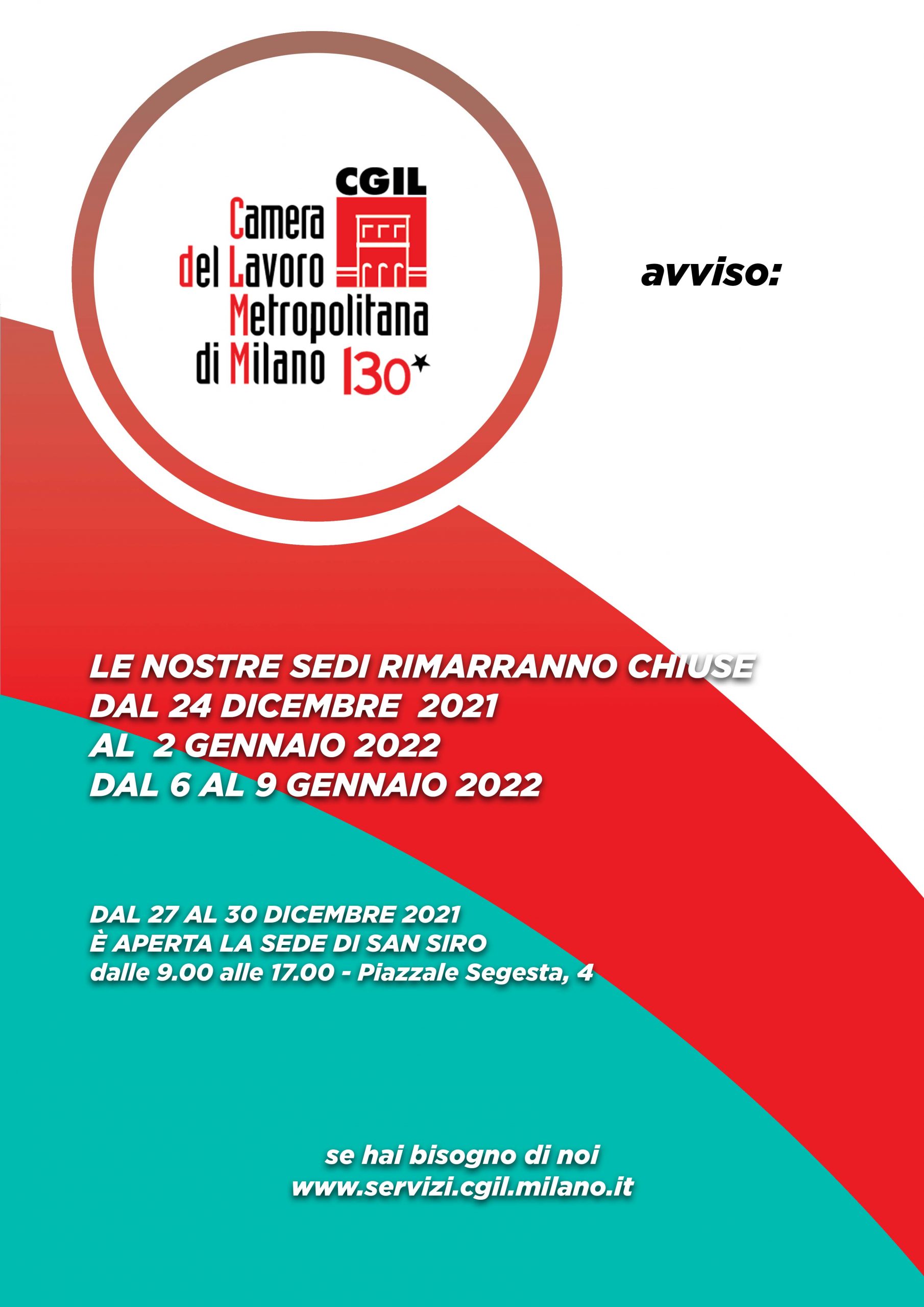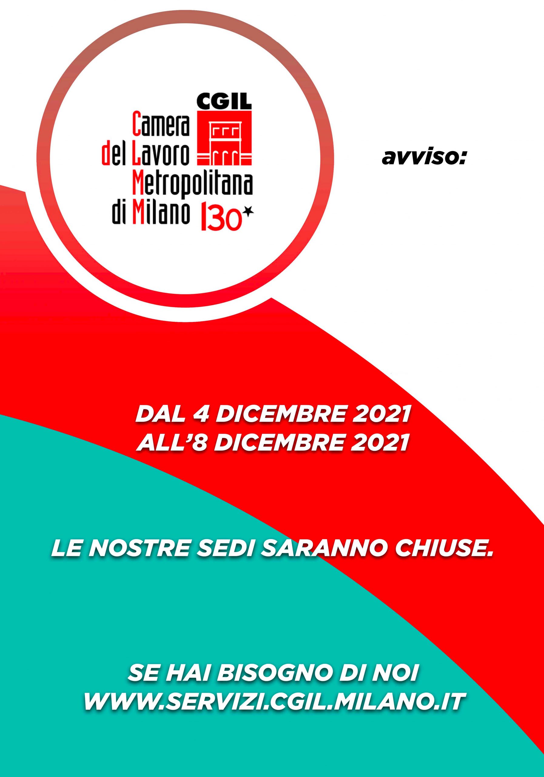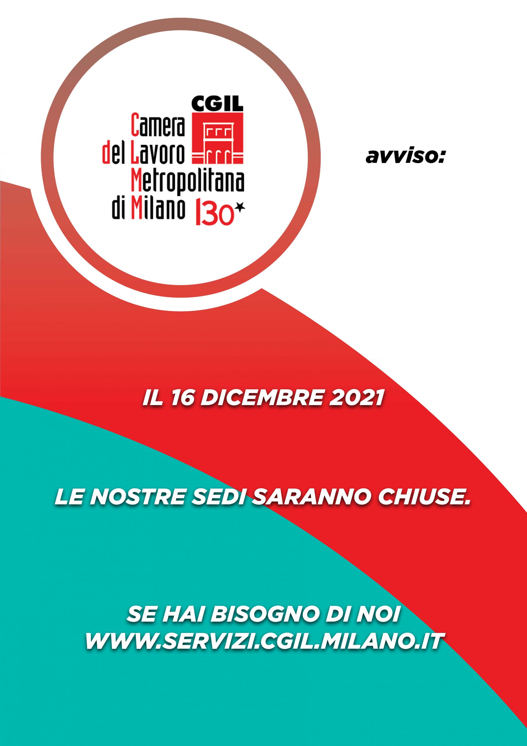 il 16 dicembre 2021 le nostre sedi saranno chiuse. Se hai bisogno di noi www.servizi.cgil.milano.it